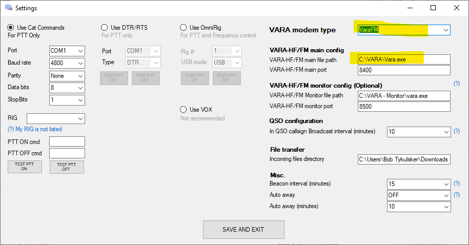 3) As the Setting page is now written, I would have to change both the VARA modem type AS WELL AS the file path (and in my case port). I often have HF, HF Monitor and FM sessions running simultaneously (on different ports). It works well.