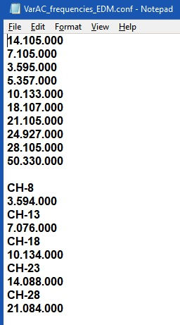 So I may give my standard frequencies a descriptor like 20m, 30m and my ECOMM ones as maybe E20m, E30m.