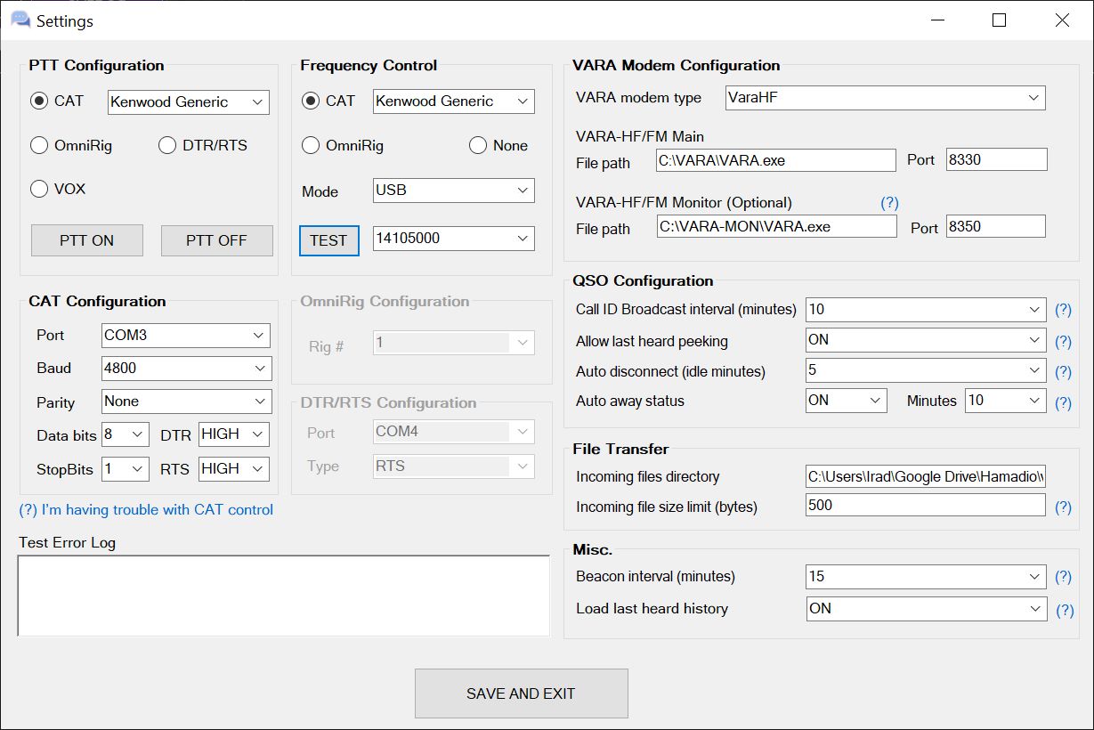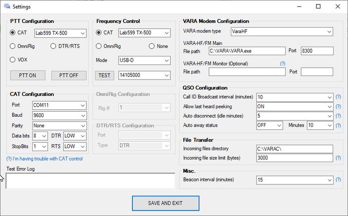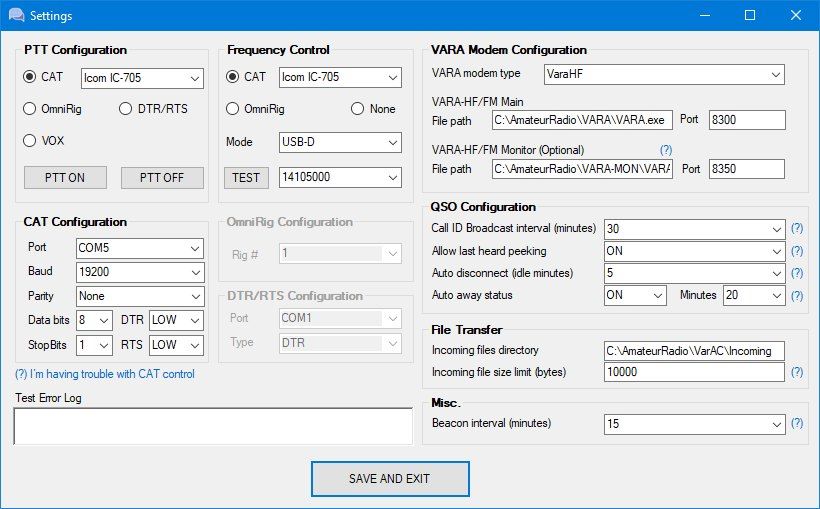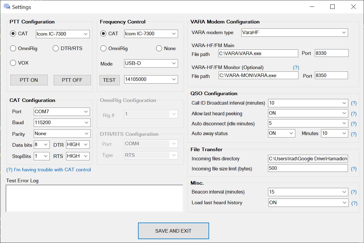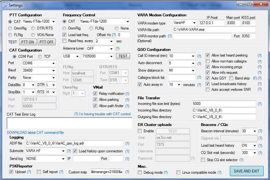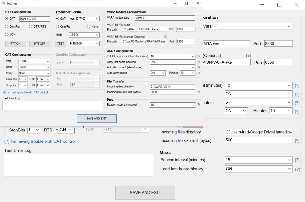 Here is an example of an IC-7300 VarAC CAT configuration: